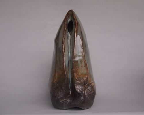 刳貫青萩灰被り花器